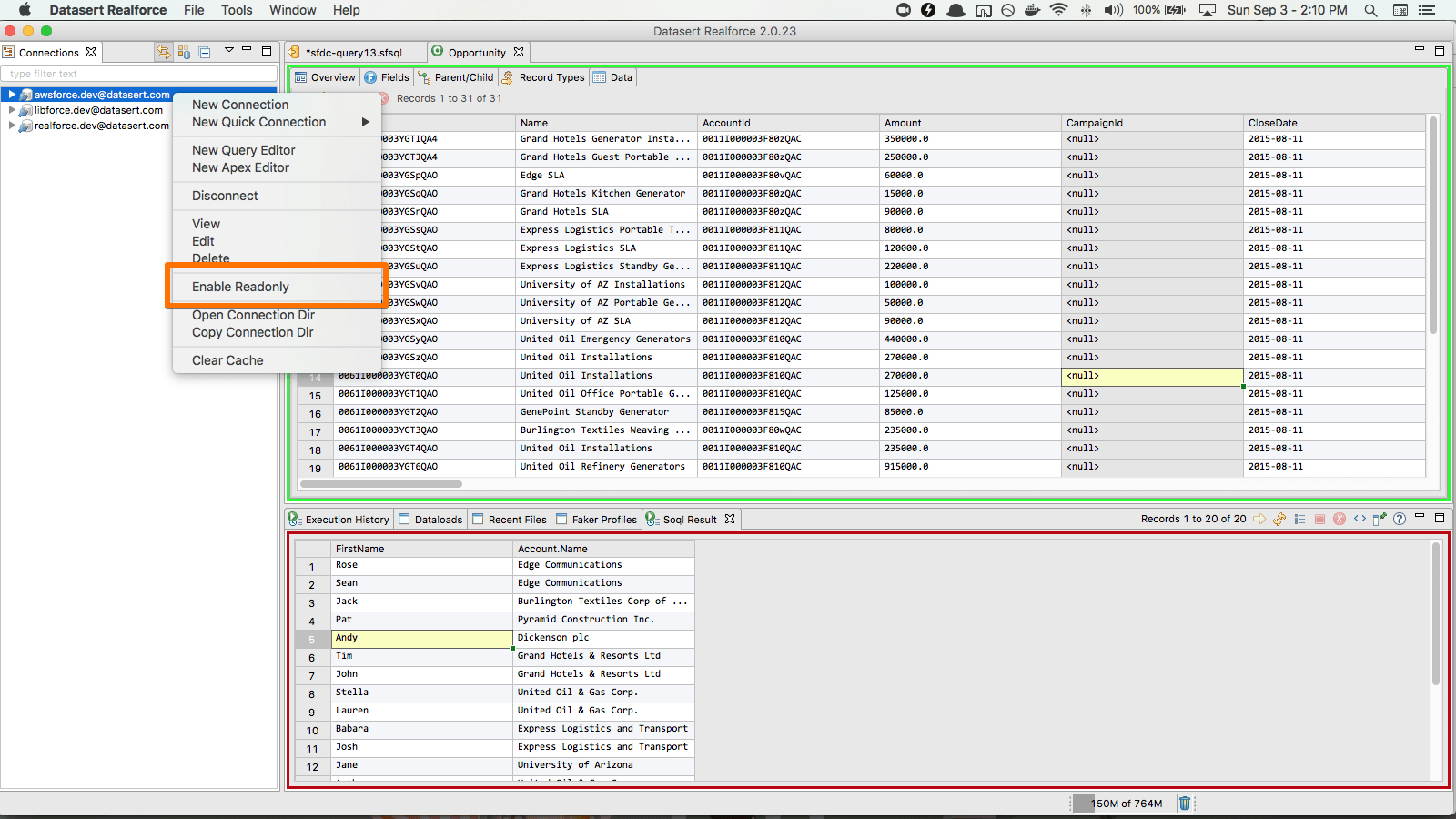 Prevent accidental editing of Salesforce records by marking connection as Readonly