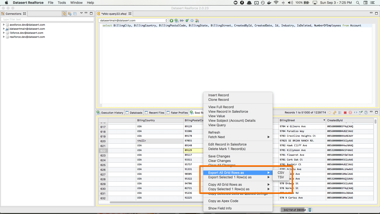 Export/Copy all/selected records as csv