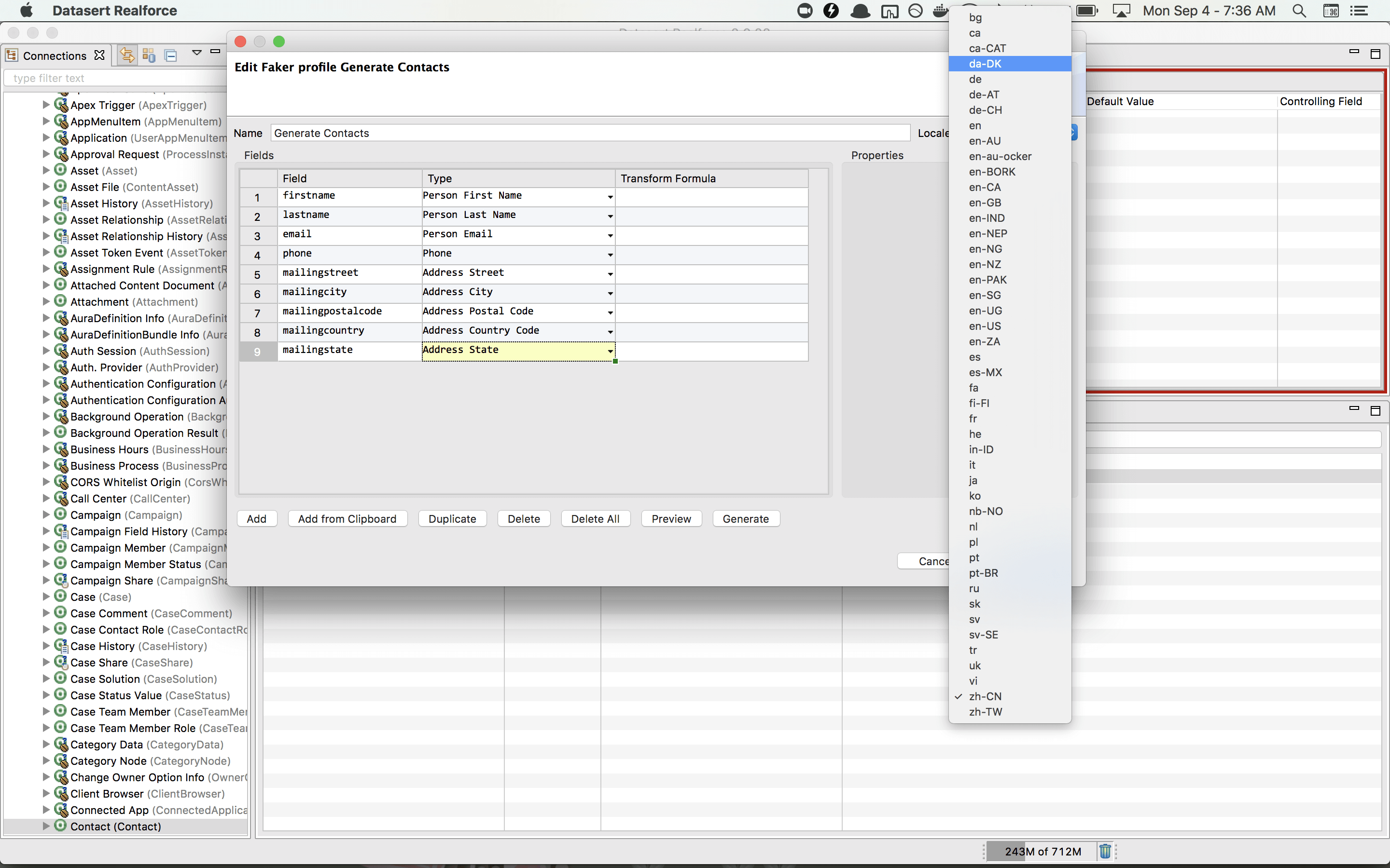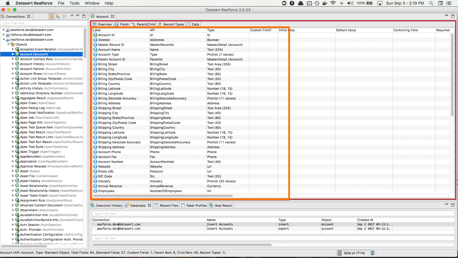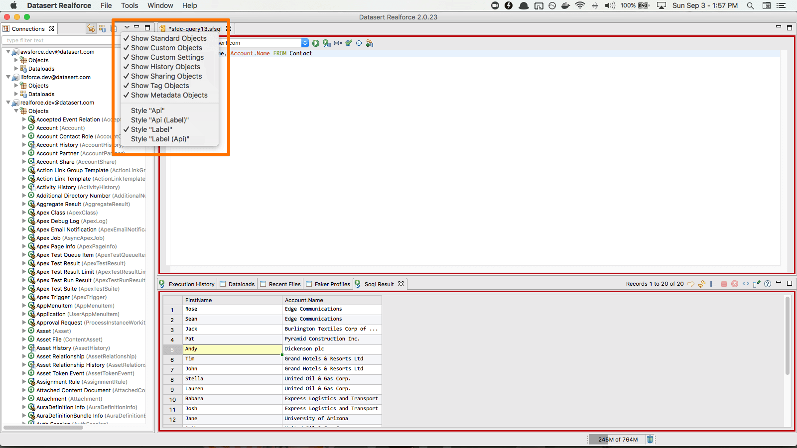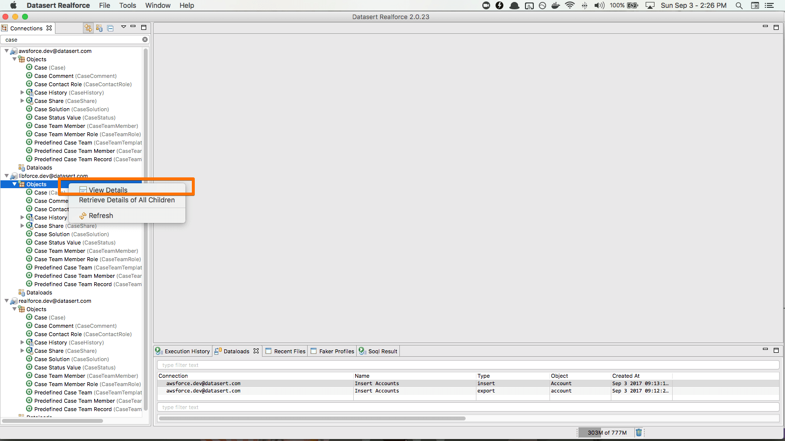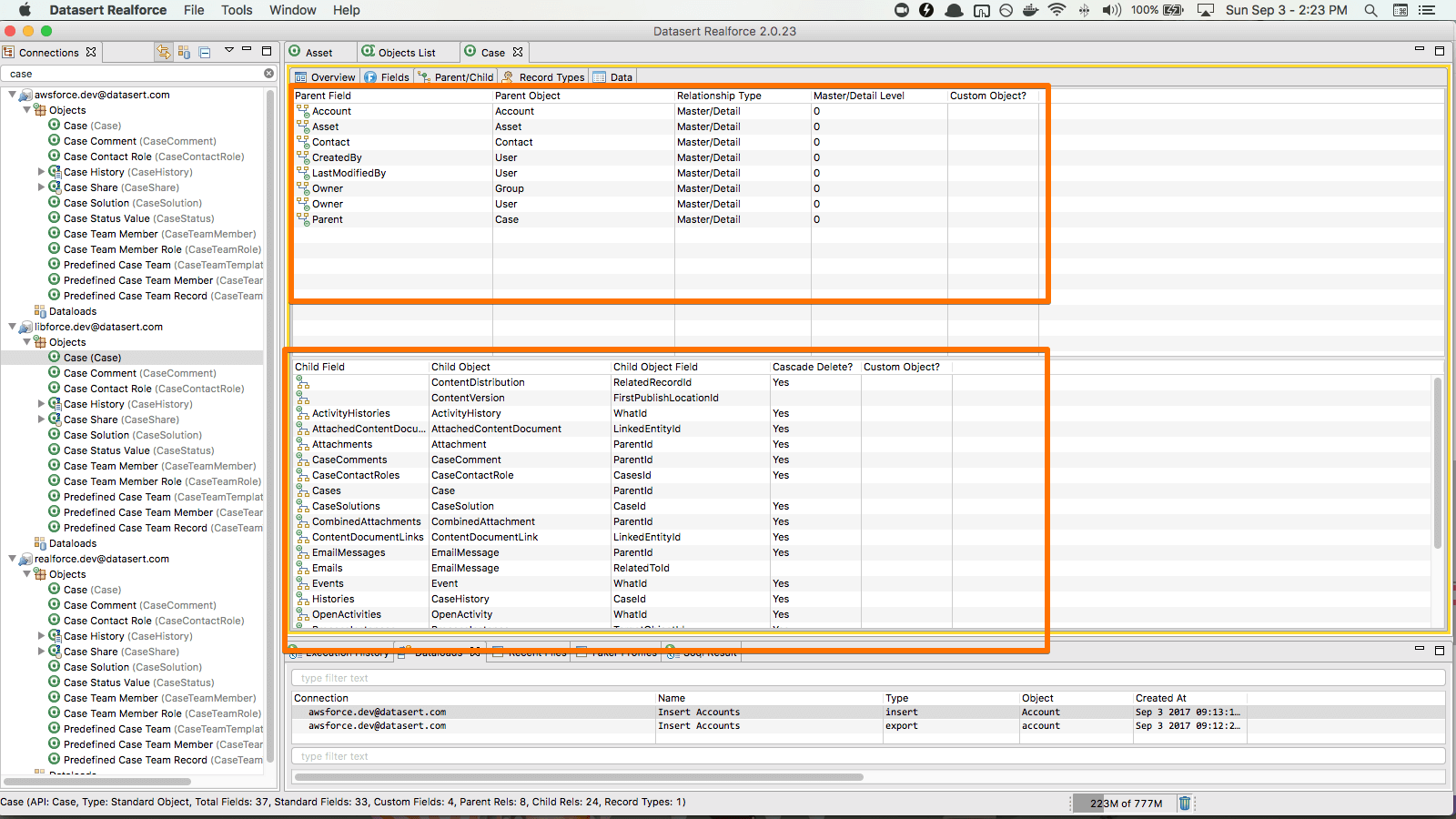 View all defined connections and its objects including standard, custom, custom settings and custom metadata objects