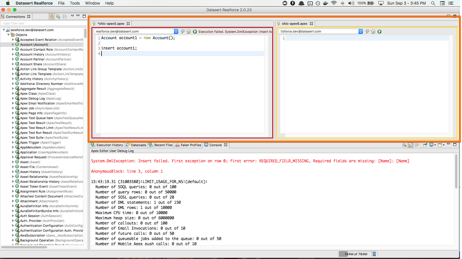 Open multiple apex editors to execute against different connections